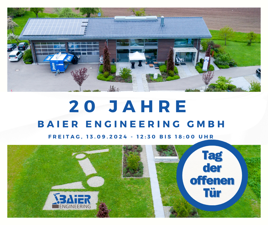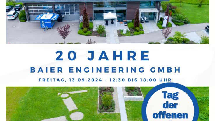 „Wir sind stolz darauf, dieses Jubiläum mit unseren Kunden, Partnern und allen Interessierten aus der Umgebung feiern zu können. Ohne ihre Unterstützung wäre dieser Meilenstein nicht möglich gewesen“, sagt Thomas Baier, Geschäftsführer von Baier Engineering GmbH. „Deshalb möchten wir uns bei allen bedanken und einen Einblick in unsere Arbeit und unsere Erfolgsgeschichte der letzten 20 Jahre geben.“