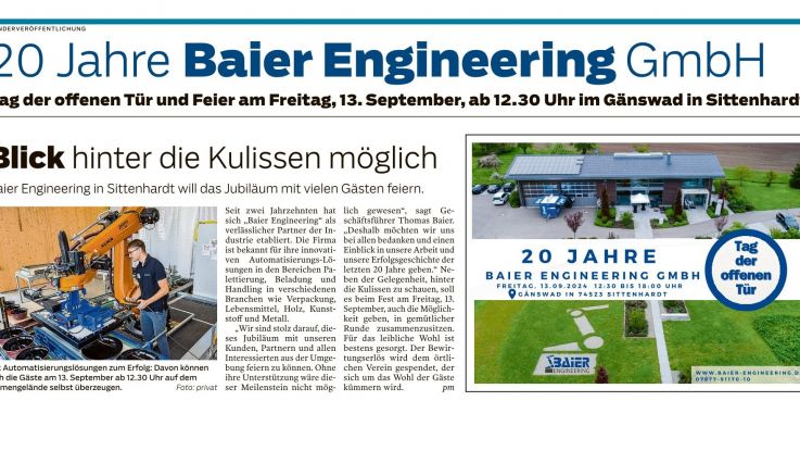Presse Artikel über 20 Jahre Baier Engineering GmbH