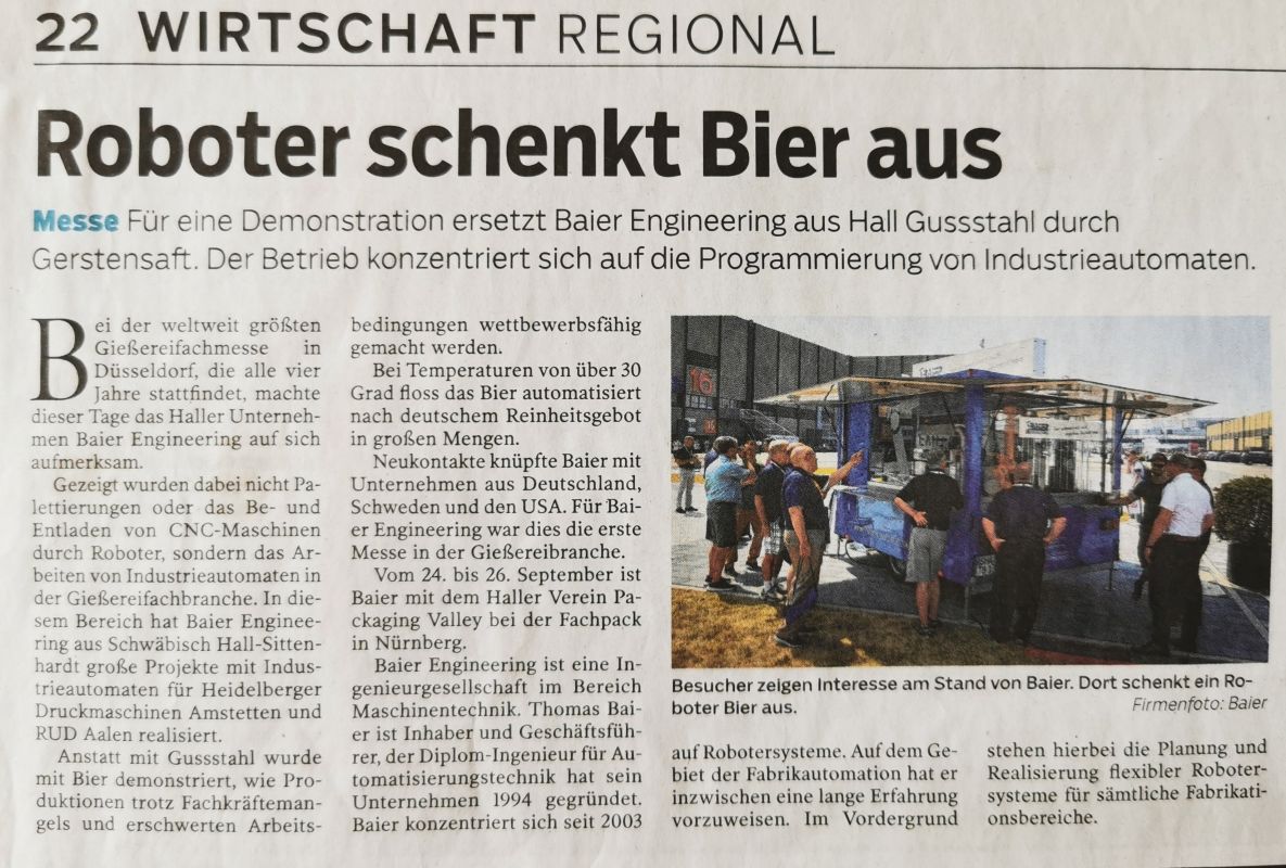 Bei der weltweit größten Gießereifachmesse in Düsseldorf schenkt unser Roboter das Bier aus!